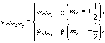 的状态。于是包括自旋状态的波函数用四个量子数n、l、ml、ms作为标记,则波函数为