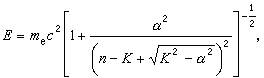 式中第一项表示电子的静止能量,这是相对论理论所特有的。第二项即玻尔能级公式,第三项代表自旋轨道耦合与质量随速度改变的影响。