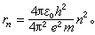 此式称为玻尔角动量量子化条件,数值n称为量子数。结合以上两式,就可以从经典的同心圆系连续轨道中选出一系列分立无辐射的定态轨道。第 n个无辐射轨道的半径为