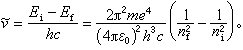 这正是氢原子光谱的巴耳末公式(1885年J.J.巴耳末首先得出),令式(5)右方的常数因子