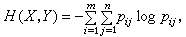 如(x,Y)为二元随机变量,取值为(x,y),x=1,2…,m,y=1,2,…,n;联合概率分布为pij,则(x,Y)的仙农熵(又称联合熵)为