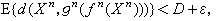 设D是一个允许误差,称R是一个D-可达码率,如果对任意ε>0,只要n充分大,就存在编码(ƒn,gn),ƒn: