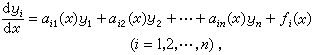 若其中αij(x),ƒi(x)在x的区间(α,b)上为连续,则方程(6)的满足