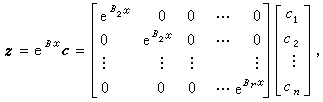 一般,当特征方程可能有重根时,可借助于线性代数中化矩阵为若尔当法式的理论来求(21)的通解。设非奇异方阵p使p-1Ap=B具若尔当法式,则线性变换y=pz可以化(21)为