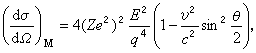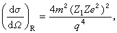 ¼ÇÈëÉä´øµçÁ£×ÓµÄÖÊÁ¿Îªm£¬µçºÉΪZ1e£¬ËÙ¶ÈΪv£¬¶¯Á¿Îªp£¬ÄÜÁ¿ÎªE¡£¶ÔÓÚÈëÉäÁ£×ÓµÄ×ÔÐýΪ0£¬ÇÒ±»·Ç³£ÖصÄ×ÔÐýΪ0£¬µçºÉΪZeµÄÔ×ÓºËÉ¢ÉäµÄÇé¿ö£¬E.¬ɪ¸£ÀûÓò£¶÷¹«Ê½µÄÒ»¼¶½üËÆ£¬ÇÒ¼Ù¶¨¶þÕß¶¼ÊǵãÁ£×Ó£¬Ëã³öÉ¢Éä΢·Ö½ØÃæÎª