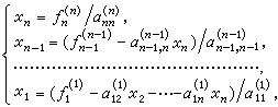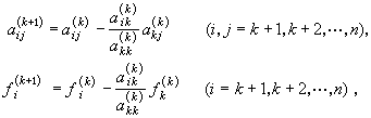 ʽÖÐA Ϊ(1)µÄϵÊýαijËù³ÉµÄ¾ØÕ󣬌²ºÍƒ ·Ö±ðΪÁÐÏòÁ¿(x1£¬x2£¬¡£¬xn)TºÍ(ƒ1£¬ƒ2£¬¡£¬ƒn)T;ÔòÒÔÉϵÄÏûÈ¥¹ý³Ì¿ÉдΪ