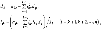 ¼ÆËãʱÏÈËãLµÄµÚÒ»ÁУ¬ÔÙ˳´ÎËãÆäºó¸÷ÁУ¬Õâ½Ð×öƽ·½¸ù·¨»òÇÇÀÕ˹»ù·¨¡£ÔÚAΪ¶Ô³ÆÕý¶¨Ê±£¬lkk¾ù²»ÎªÁ㣬¹Ê¿ÉÒÔ²»Ñ¡Ö÷Ôª£¬µ«Õâ¸ö·½·¨ÐèÒªn´Î¿ª·½ÔËË㣬¶ø¿ª·½µÄ¹¤×÷Á¿½Ï¶à¡£ÈôÉè