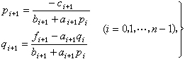 ÓÉ(8)¿ÉÒÔÖð´ÎµÝÍÆÇó³öp1£¬q1£¬p2£¬q2£¬¡£¬pn£¬qn£¬Õâ³ÆÎª¡°×·¡±µÄ¹ý³Ì£¬Ò×Öªpn=0£¬È»ºóÓÉ(7)¿ÉÒÀ´ÎÇóµÃxn£¬xn-1£¬¡£¬x1£¬Õâ½Ð¡°¸Ï¡±µÄ¹ý³Ì¡£¿ÉÒÔÖ¤Ã÷£¬ÔÚ