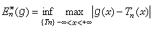 其中下确界是对于所有次数不超过n的三角多项式Tn(x)取的。设ƒ(x)是区间[α,b]上的连续函数,则用n次多项式逼近时的最佳逼近值En(ƒ)定义为: