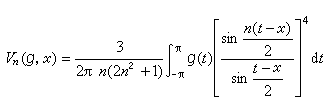 设g(x)是以2π为周期的实轴上的连续函数,则用n次三角多项式逼近时的最佳逼近值E奱(g)定义为:
