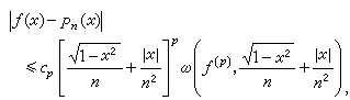 实际上,用代数多项式进行逼近时,其正定理应该依赖于点x的分布:在区间[α,b]的两个端点处,逼近的阶比内部要高。