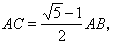 分已知线段为两部分,使其中一部分是全线段与另一部分的比例中项。这就是黄金分割的问题。作法很简单,设已知线段为AB,作BD⊥AB,使BD=AB/2,连接AD,以D为心,BD为半径作弧交AD于E,再以A为心,AE为半径作弧交AB于C,则C就是所求的分点。