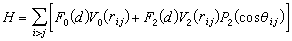 出发,用平均场近似可以计算出各向同性液相、向列相与近晶A相的各类相图。式中 F0(d)V0(rij)为分子质心的作用势能,F2(d)V2(rij)p2(cosθij)为伦敦色散力排列势能,rij和θij是i分子和j分子之间的距离和夹角。V0=0,F2V2=-J 的情形,称为迈尔-绍佩(Maier-Saupe)理论,J是与分子体积等有关的常数。 这时平均场的