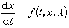 式中(t,x)∈G,G是Rn+1中的开域, λ∈Iλ,Iλ是开区间,ƒ:G×Iλ→Rn。为了表明解对初值和参数的依赖关系,把方程(1)λ满足初值条件(2)的解记为 x=φ( t, t0, x0,λ);而φ( t0, t0, x0,λ)= x0。
