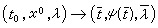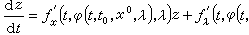 解对初值和参数的可微性定理设ƒ(t,x,λ)在G×Iλ内关于(x,λ)连续可微,那么初值问题(1)λ+(2)的解x=φ(t,t0,x0,λ)作为变量(t,t0,x0,λ)的函数在其定义域内连续可微。