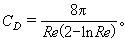 圆柱的阻力D按单位柱高计算,面积为d·1。在雷诺数