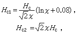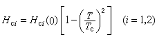 式中Hc为热力学临界磁场。它们与温度的关系都可近似地表示为