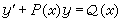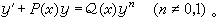有些微分方程可以通过变量代换而化为一阶线性方程。最常见的是伯努利方程
