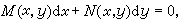 (19)称为恰当(微分)方程或全微分方程。(19)式左边可写为dU(x,y)的形式, U(x,y)可借沿特殊道路的线积分求出,而(19)的通积分是U(x,y)=C。但若M、N 的偏导数有不连续点时,则U(x,y)可能是多值函数。