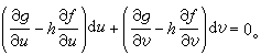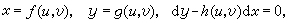 若ω(u,v,C)=0是(24)的通积分,则x=ƒ(u,v),y=g(u,v),ω(u,v,C)=0是(22)的通积分。这种求解方法称为引入参数法。