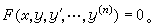 的方程称为一阶隐方程。当x、y的值固定时,一般由(22)可以解出不止一个的y┡的值,这表示往往有多于一条的积分曲线经过(x,y)空间的一定点。特别,如果对于某一曲线Г上的每一点(x,y),由(22)式解得的y┡都有重根,并且Г本身也是(22)的积分曲线,则它往往就成为(22)的奇解。一般,Г也是(22)的积分曲线族的包络(有例外)。所以,求解隐方程(22)时经常在通解以外还可以得到奇解或包络。当求解由几何学所导出的隐方程时,目的往往是后者而非前者。