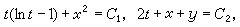 则称之为(1)的通解。(2)或 (3)满足上述对通解或通积分要求。除此以外,还必须再补上使ƒ2(y)=0的一个或多个的常数解y呏yi,以及使g1(x)=0的常数解x呏xj,这些常数解有时能由(2)中令C=0 或1/C=0得到,有时则不能。例如,在用分离变量法求解方程