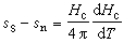 式中ss、ms分别是超导相的单位体积熵和磁化强度,sn、mn是对应正常相的量。其实只要把式(4)中的(p,υ)换成(-Hc,m)就行了。由于超导体又是一理想的抗磁体,故内部的磁感应强度等于零,则有