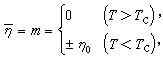 是磁化强度。还可以求出能量、熵、亥姆霍兹自由能(见自由能)等各个热力学量,当T>Tc时,它们都等于零,当T<Tc时,它们都是η0的偶函数。这表明存在由式(29)给出的临界温度Tc,在Tc以上,当H=0时,物质不磁化;在Tc以下,尽管H=0,但磁化强度不为零,它可正可负,且无论磁化强度是正还是负,热力学函数均相同,故在临界温度以下,铁磁性物质存在相变。