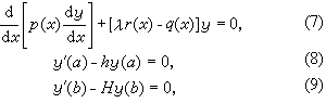 式中(α,b)是有限区间,1/p(x),q(x),1/r(x)为实的有界连续函数。