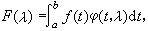 φ(x,λ)为满足α处边界条件的解;ρ(λ)为不减函数, 称为谱函数。当ρ(λ)为纯阶梯函数时,展开式成为前述的级数形式(10),当ρ(λ)没有跳点,展开式成为广义傅里叶积分。对于区间两端都为奇点的情形,展开式为