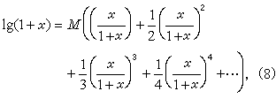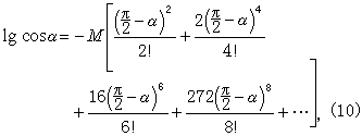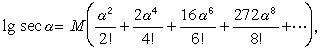 式中0<α<π/4。并指出由(8)还可得lgsecα 及 lgcosα的展开式各一。由此得到用展开式造三角函数对数表的方法。