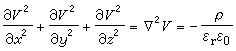 式中ρ为自由电荷密度,纯数 εr为各分区媒质的相对介电常数,真空介电常数εo=8.854×10-12法/米。在没有自由电荷的区域里,ρ=0,泊松方程就简化为拉普拉斯方程