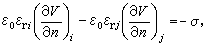 式中i,j指分界面两边的不同分区,σ 为界面上的自由电荷密度,n表示边界面上的内法线方向。