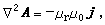 式中纯数μr 为媒质的相对磁导率, 真空磁导率μo=1.257×10-6亨/米。在传导电流密度j=0的区域里,上式简化为拉普拉斯方程
