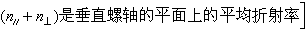液晶是非线性光学材料,具有双折射性质。向列相液晶的平行于分子长轴的折射率n∥大于垂直于分子长轴的折射率n喲。沿螺旋轴方向入射于胆甾相的白光分解为两束圆偏振光,其中旋光性(旋光性由面对光源时电场矢量的转动方向规定)与螺旋结构相同的一束发生全反射,另一束透射。反射光与波长有关。波长为