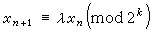 (k>2)。取乘子λ=8α±3,初值x1=2b+1(α,b为任意正整数)且λ的二进制表示中0、1的出现不规则时,就可以得到周期长为2