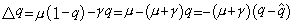 每代基因频率的变化与这频率和平衡点的离差有关,当q大于