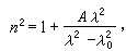 式中A与λo为两个常量,λo表示对应于物质中微粒的固有振动频率的真空中波长,也就是物质的吸收线或吸收带的波长位置。这个公式可更好地表述靠近吸收线区域的n与λ关系,但存在一个困难,即当λ=λo时公式无意义。在λ