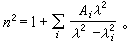 式中常量 A、B、C由实验测定。对在可见光波段透明的材料,上式有相当高的准确度。粗略些,可只取上式右方前两项