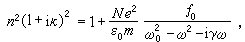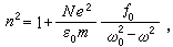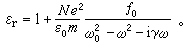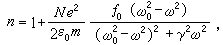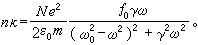 是光波圆频率ω 的函数。xo为复数表明强迫振动与光波振动有一定的位相差。由振子形成的变化电矩可写成ex。若物质单位体积中有N个分子,则它们共有Nfo个固有频率为ωo的振子,其极化强度为p=Nfoex,因而物质的相对介电常数(真空介电常数用εo表示)为