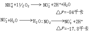 硝化细菌将氨氧化为硝酸的过程。19世纪以前,人们把硝酸盐看作是化学作用的产物,即空气中的氧和氨经土壤催化形成。1862年L.巴斯德首先指出硝酸盐的形成可能是微生物作用的结果。1877年,德国化学家T.施勒辛和A.明茨用消毒土壤的办法,证实了氨被氧化为硝酸的确是生物学过程。1891年,С.Н.维诺格拉茨基用无机盐培养基成功地获得了硝化细菌的纯培养,最终证实了硝化作用是由两群化能自养细菌进行的。先是亚硝化单胞菌将铵氧化为亚硝酸;然后硝化杆菌再将亚硝酸氧化为硝酸。这两群细菌统称硝化细菌。其作用过程如下: