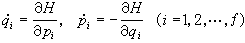 确定,式中H(q1,…,q;p1,…,p)是系统的哈密顿量。当系统从不同的初始状态出发随时间变化时,相空间中系统的代表点就沿不同的轨道运动。因哈密顿函数及其微分是单值函数,这些不同的轨道彼此不能相交。