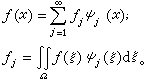 ,相应的特征函数ψn(x)组成l2(Ω)上的完备正交系。乘以常因子来规范ψn(x),使其l2(Ω)模为1,则Ω上的任意函数ƒ(x)的特征展式可写为: