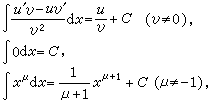 求函数的不定积分的一些基本法则。基于积分与微分的互逆关系,将微分公式倒转顺序,便立刻得到一些简单的积分公式: