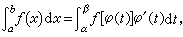 这里要求的条件是:ƒ(x)在区间[α,b]上连续;φ(t)在区间[α,β]上连续并且适合φ(α)=α,φ(β)=b,α≤φ(t)≤b;φ ′(t)在区间[α,β]上处处存在并且可积。