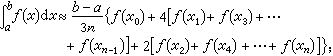 ,其中M是|ƒ(4)(x)|在区间[α,b]上的最大值。上述近似公式称为辛普森公式。