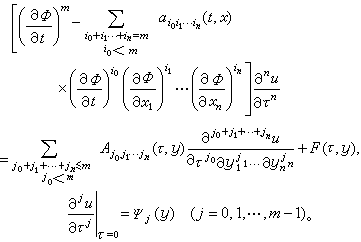 附近的解析函数,而且为了方便,设φt≠0。这时可以作变量变换τ=φ(t,x1,x2,…,xn),yj=xj,j=1,2,…,n,柯西问题(1)、(2)将变为