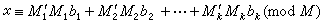 表示x模mi的最小非负剩余。