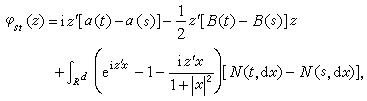 式中z┡是向量z的转置;α(t)是取值于Rd中的连续函数;B(t)是连续地依赖于t的d阶非负定方阵;对固定的离原点距离大于0的d维波莱尔集A,N(·,A)是连续非降函数;对固定的t,N(t,·)作为Rd\{0}的波莱尔子集类上的集函数是可列可加的,且满足