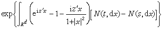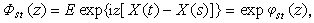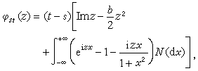 特征函数表达式的三个部分代表了增量的三个相互独立的部分:exp{iz┡[α(t)-α(s)]}相应于非随机部分的增量;exp{iz┡[B(t)-B(s)]z}相应于正态部分的增量;